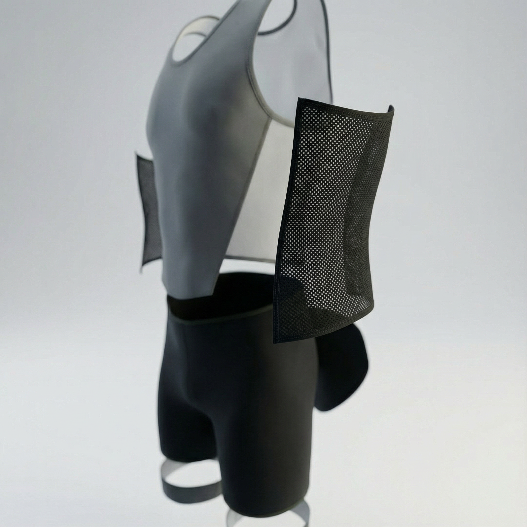 The side panels of the vest are made from a lightweight stretch mesh to enhance